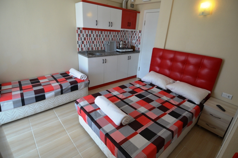 Ara katta 2 adet ve giriş katta 1 adet olan odalar 1+1 şeklindedir. Odalarda yatak düzeni; bir odada 1 adet çift kişilik ve 1 adet tek kişilik yatak, diğer odada 1 adet ranza şeklindedir. Odalar deniz ve havuz manzaralıdır.